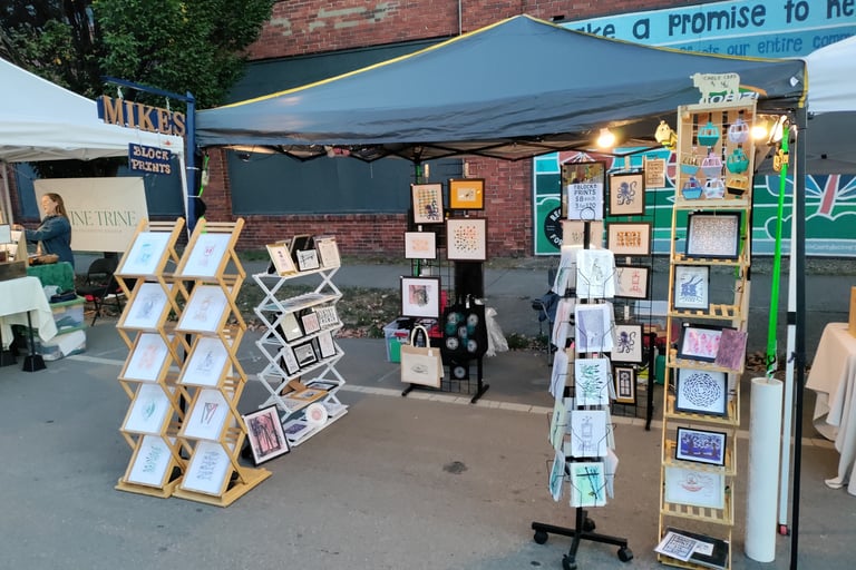 Looking ahead, I plan to expand into larger festivals, travel to new regions, and begin teaching classes. Above all, I remain committed to creating new work: prints that celebrate curiosity, craftsmanship, and the joy of following whatever creative direction pulls me next.