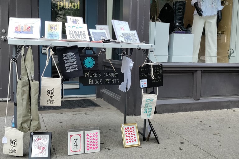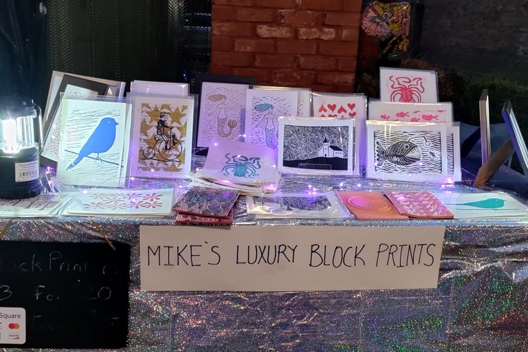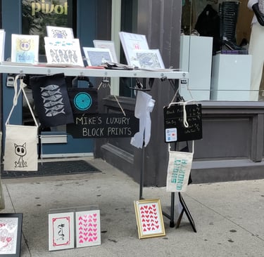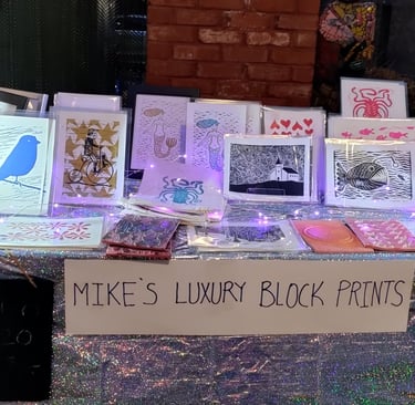 Mike’s Luxury Block Prints creates hand-carved, hand-inked, and hand-pressed artwork inspired by sea creatures, nature, and a healthy dose of humor. Every print begins as a block carved in my studio and is pulled by hand using professional-grade paper and high‑quality inks. The result is artwork that’s tactile, expressive, and built to last — unique pieces meant to bring joy for years.