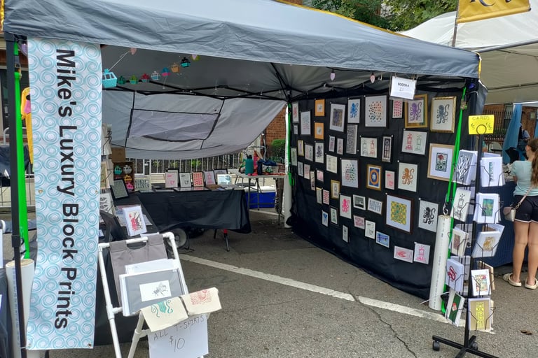 Looking ahead, I plan to expand into larger festivals, travel to new regions, and begin teaching classes. Above all, I remain committed to creating new work: prints that celebrate curiosity, craftsmanship, and the joy of following whatever creative direction pulls me next.